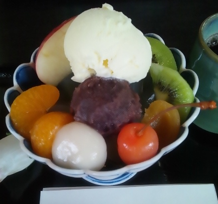 北鎌倉三日月堂花仙のクリームあんみつ。