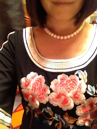 渋々衝動買いしたオリエンタルなワンピースを着て出席。