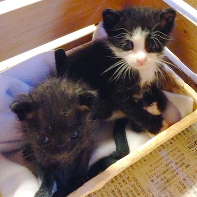 2週間ほど前に友達が2匹の子猫を保護しました。